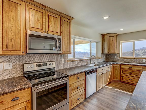 Wake up everyday to on-top of the world views from this 2021, energy efficient home on 25.2 acres in Twin River Ranch Subdivision. This is a Smart System high performance home, boasting 2 bedrooms, 2 baths, 1600 sq ft with neutral earth tones and natural wood through out. Big views out every window on this one! Gorgeous hickory, soft close cabinetry in the kitchen w/ a large island and breakfast bar. High efficiency radiant heat in the floor/slab, 8 inch concrete walls w/ 4 inches of foam insulation, wood stove, water softener, vinyl plank laminate flooring, 2 covered patios w/stamped concrete and plenty of room to build a garage and a shop! All the excavation is done and the conduit is in place to power up your new dwellings. All stainless steel appliances included. There is an undeveloped spring and plenty of room for livestock. This property is situated approximately 4.5 miles from the big Salmon River where you can launch your boat and enjoy world class fishing! BATVAI - twinriverranch.com