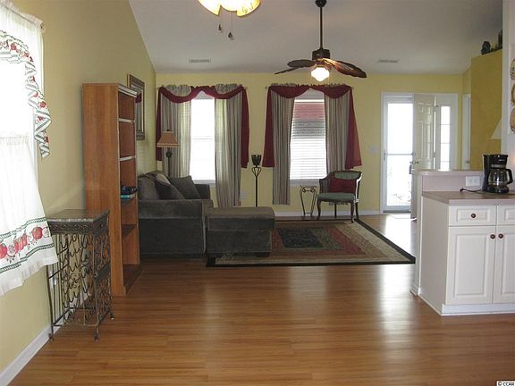This adorable home in Island Green East is located in a cul-de-sac and on the pond. This home features vaulted ceilings in the living room and laminate floors that continue throughout the dining room, kitchen and Carolina room. Spacious master bedroom with walk in closet and master bathroom with double sinks and full sized walk in shower. Two additional bedrooms and a second full bath complete this home. The two car garage has pull down stairs and plywood floors in the attic for your storage needs. Step out of the Carolina room onto your patio, perfect for grilling or just enjoying the great view of the pond. HOA fees include gated security after 7pm, trash collection and basic cable, outdoor pool, and amenities center with workout and weight rooms, banquet room and indoor pool. Don't miss your opportunity to own a home conveniently located close to all the attractions of Myrtle Beach and Murrells Inlet! *All measurements are approximate and not guaranteed, buyer is responsible for verification*