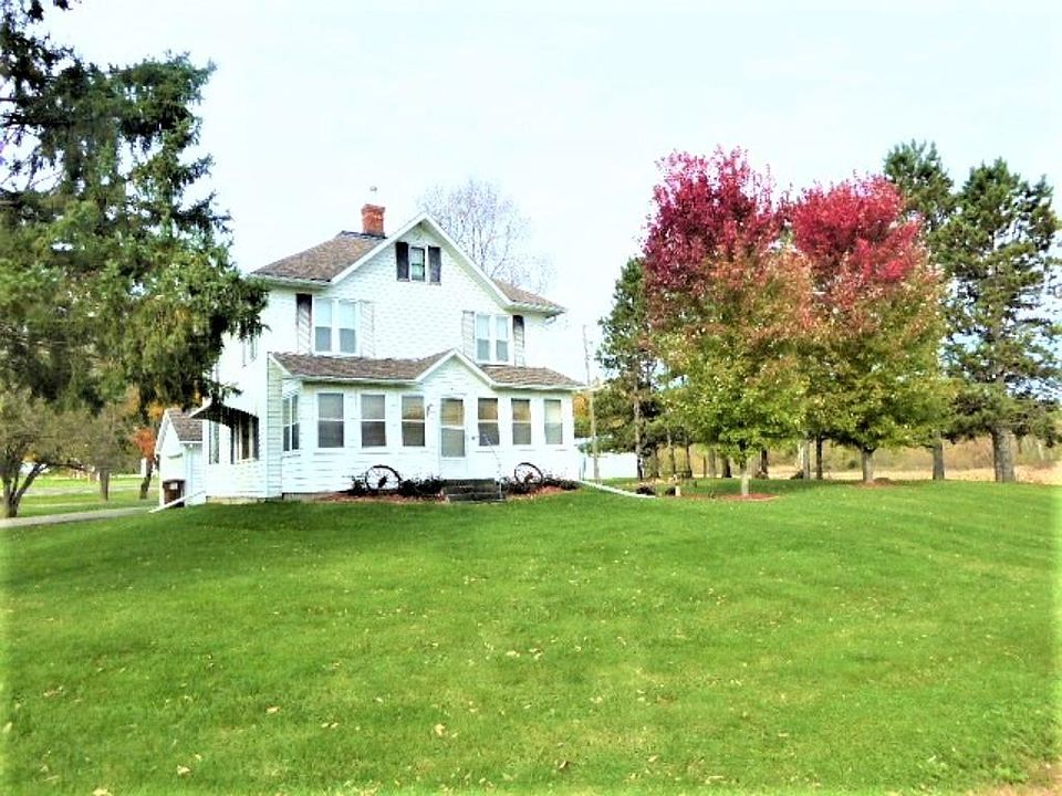 Nice 2 story home with 4 bedrooms and 2 baths. Large 2 car attached garage + 26'x26' pole shed! Home and Shed on 1-acre lot plus 6-acres of woods about 1000' away (total acres= 7.1). City sewer and new well in 2009. Forced air heat and central air (natural gas average= $68/mo). New shingles 2012, upstairs windows in 2017, new carpet main level and hall in 2017. Large 3 season porch. Asphalt driveway. Main level bedroom. New 200-amp breaker panel. Clean and well taken care of home and yard!