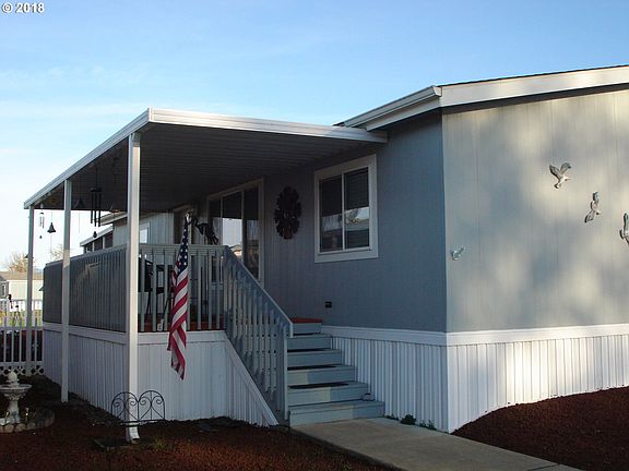 Great manufactured home in a very nice 55+ park in Sutherlin. 3 BR, 2BA, master suite with a sliding glass door to covered deck with hot tub, great kitchen with beautiful cabinets, covered decks, shed and carport. Don't miss this nice clean home in Sutherlin!