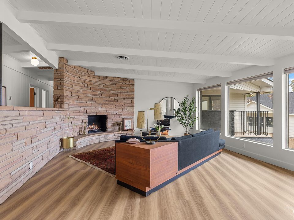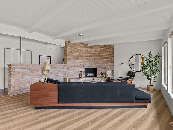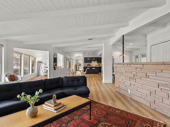 Expansive Mid-Century modern stunner sitting on over 1/2-acre of flat usable land w/ Mountain Views in the heart of SE Boise! Reimagined by Timber & Love while maintaining the timeless charm w/ the walls of windows, natural stone features throughout & classic architectural lines. Lives like a single-story, featuring 2,385SF w/ 3 bed & 2.5 baths including the primary w/ en-suite plus the newly opened up & re-envisioned kitchen/dining area that walks out to a covered patio overlooking the property all on the main level. The bonus daylight basement includes up to 3 added bedrooms/1bath, 2 large bonus rooms + tons and tons of storage!! Updates include new flooring, updated fixtures, custom cabinetry, Quartzite countertops, SS appliances, new roof & fresh interior/exterior paint. attached 2 car covered carport plus long driveway for extra vehicles & potential to add a detached garage/ADU off the front. All of this and just minutes to downtown, the Boise River and hiking trails..this truly is a one-of-a-kind home!