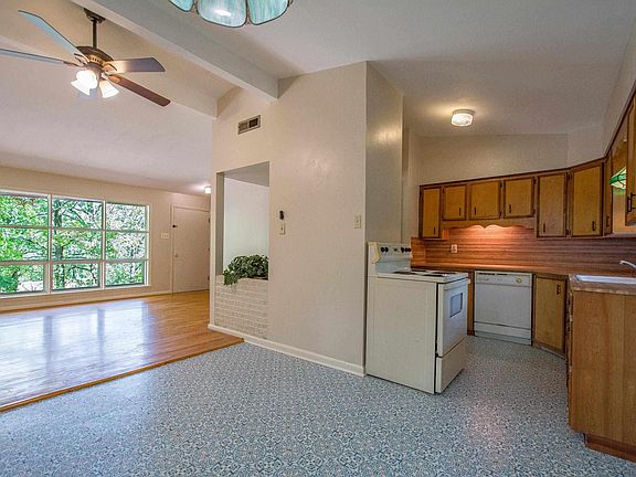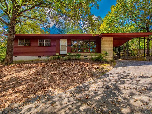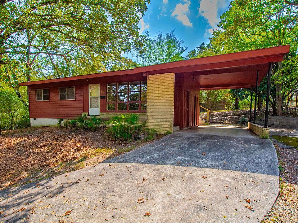 "The little red house on the hill" sits right in the heart of Park Hill. Nestled among the trees with plenty of privacy. Walk to the lake 1, parks and walking trails all within 3 blocks of the home. Original tile, hardwood floors and vintage light fixtures. Beautiful wood paneling lines first bedroom /office. Lovely light infused living area with huge front window feels like you are in a tree house. New kitchen and dining flooring. washer and dryer connections are directly off the carport. Lovely drive up to the top of the hill. with ample parking Vintage charm abounds here. Roof is 2023. No Sellers disclosure.