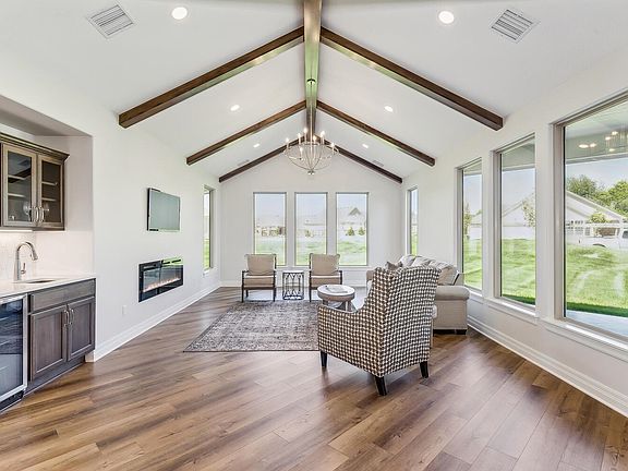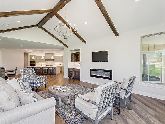 Ask us about lowering your monthly payment with a 2/1 interest rate buy-down! Immerse yourself in luxury at The Provenance, a stunning home crafted by Perfection Builders in the Courtyards at the Oaks in Derby! Schedule your exclusive self-guided tour by scanning the QR code displayed in front of the home to explore this grand residence at your leisure. The Provenance plan epitomizes expansive living with two full first-floor owner's suites and two charming garden courtyards - both thoughtfully covered for convenient and low-maintenance enjoyment! This home boasts high-end finishes and elegant details throughout, offering the epitome of luxury ranch living. Entertain or unwind in the vast living room boasting vaulted ceilings with beams, a cozy fireplace, a wet bar, and an abundance of natural light pouring in through large windows. The large kitchen is a culinary dream with quartz countertops, a substantial island featuring a waterfall countertop with an eating bar, a gas range, ambient over- and under-cabinet lighting, and a spacious walk-in pantry. Relax by the fireplace in the den/library and bask in the owner's suite bath, featuring a walk-in tile shower, a freestanding soaker tub, and an expansive walk-in closet adorned with custom shelving and chest-of-drawers. The separate laundry room offers convenience and functionality with cabinets, shelving, and a sink. A concrete storm room sits just inside the garage entry across from a generously sized drop-zone and can double as an extra pantry or storage area. A myriad of HOA services including lawn care, irrigation, snow removal, and home siding painting are provided, freeing you from maintenance concerns. Additionally, 24/7 access to the community clubhouse with an exercise room, saltwater pool, and pickleball courts elevates your lifestyle experience to new heights!