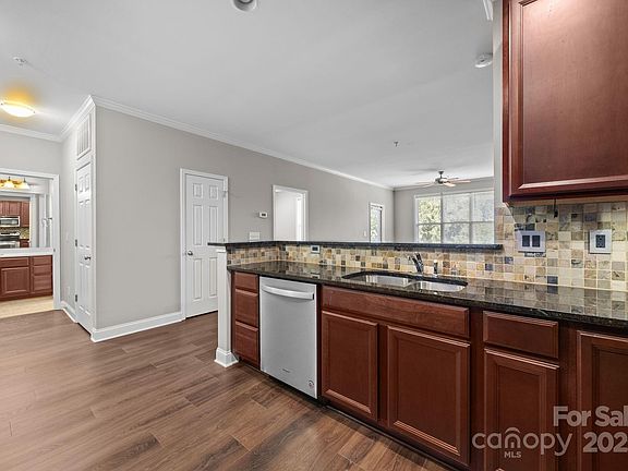 Welcome to Preston Flats! A gated community, located within a quick commute of beautiful uptown Charlotte and close proximity to Montford and Freedom Park. Come see this desired top floor condo that is professionally cleaned and move in ready. An open-floor concept greets you initially along with a generous sized living room and an abundance of natural light throughout the home. A large size kitchen offers granite counter tops, breakfast bar and SS appliances and new LG SS refrigerator. This condo features two large full bathrooms and two spacious bedrooms that include all new carpet. This is the ONLY condo on the top floor with its own additional climate-controlled storage unit located at the end of the hall. Water Heater 2023 and HVAC 2022. Enjoy the amenities of a resident only pool and green space area. Enjoy a deeded parking space within the parking garage.