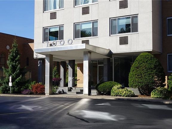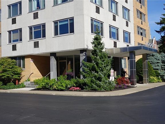 RARE OPPORTUNITY! Perfect for owner or investor. COMPLETELY MAINTENANCE FREE! HOA $375/Month INCLUDES HEAT, WATER, & HOT WATER! The sleek and clean condo has 2 bedrooms, 1 bath and walls of windows. Arguably one of the BEST VIEWS in the building! This TOP floor unit has a PRIVATE BALCONY! Enjoy fresh air and outdoor space overlooking the downtown skyline. Secure building with elevator, laundry, common room, storage and more! LOW TAXES! AMPLE STORAGE includes 5 CLOSETS! Right in the heart of East Avenue just steps from Eastman House, Park Ave Restaurants, Village Gate, Wegmans & More! Walkable to EVERYTHING! WHY are you RENTING!