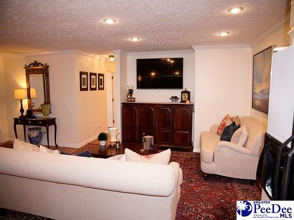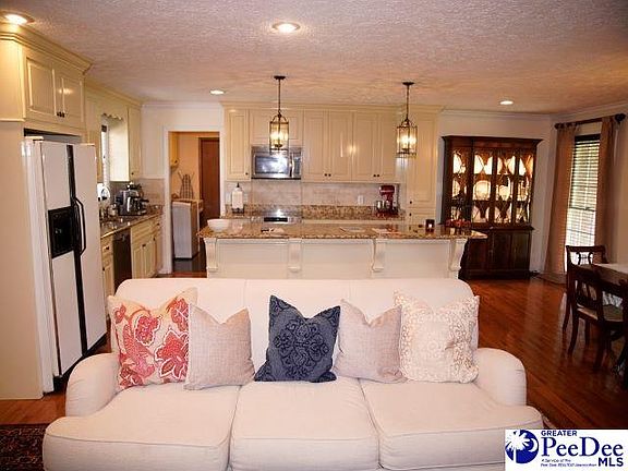Charm! Charm! Charm! abounds in this four bedroom, 3 bath brick home located in the city of Dillon on two lots. Wonderfully decorated, this home has a very open floor plan and is move in ready. It is perfect for your family as well as for entertaining. It is freshly painted throughout. Also, the kitchen and baths have all been updated. There are so many extras such as granite, quartz, hardwood floors, double car garage with a lot of storage /cabinets, alarm system, cameras, as well as a lot of fruit trees and bushes. Located on a large corner lot with an invisible dog fence, fire pit, & exterior landscape lighting. There is also a sprinkler system for the yard which is on city water. There is plenty of room for a pool! This lovely home features crown molding in all rooms. The kitchen features all appliances and extra large island in granite. All lights have been replaced with LED lights and added smart devices such as RING.