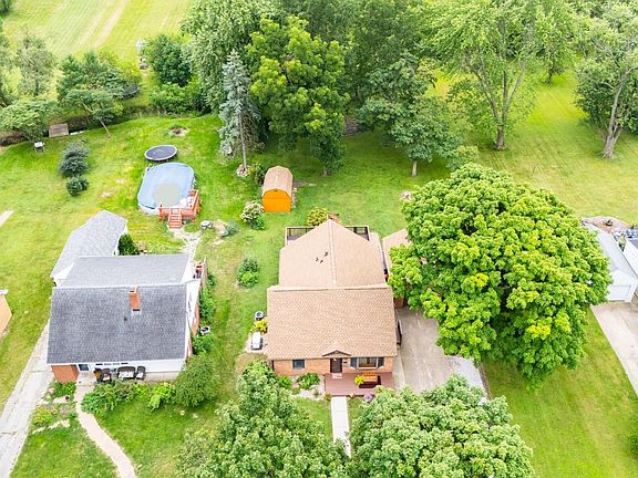 County Living with City Amenities look no further. 3 bedroom and 3 full baths fill this brick 1.5 story with main floor laundry. Many updates in 2008 including large family, dining room area with open kitchen. Kitchen features Cherry Amish Cabinets with island, quartz counter tops and stainless steel appliances. Upstairs features your own suite with private bath. Updated bath in 2010 with new drywall, anderson windows and tub surround. Basement has additional space with rec room, 3rd bedroom with new bar area or another rec room with walk out basement and 1 full bath. Outside features plenty of area for entertainment, fire pit, 16x24 shed with 1.75 acres. Enjoy our own oasis with a wooden bridge leading too 4 additional lots with fruit trees and waiting for your imagination. Other updates include 2017-rear deck updated and 2018 front deck replaced and dewatering system added to front wall. HVAC updated in 2010, Roof, 6in gutters and downspouts and generator updated in-2023. Dont miss this rare find.