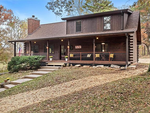 Experience Country Living in St. Louis County. Enjoy your own Slice of HEAVEN at 1000 Eureka Road, where Rustic Charm meets Modern Convenience. Nestled on 6.24 AC of Peaceful Countryside WITHOUT Subdivision Restrictions!. An Expansive Covered Front Porch Stretches across the Front of the Home w/Porch Swing; Perfect for Enjoying the Natural Beauty of the Property, which includes a Creek running alongside. Picturesque Horse Property offers this Delightful, QUALITY 4-Bedroom, 2.5 Bathroom CUSTOM Log Home featuring an Open, Vaulted Living/Dining Room with Tongue & Groove Ceilings, Stunning Stone Wood Burning Fireplace W/Cedar Mantle & Large Windows offering Idyllic Views & Natural Light. Relax in the HUGE Family Room featuring Job Finished Oak Floors, 100 Year Old Barn Wood Trim. Oversized 3+-Car Garage offers Ample Storage & Huge Concrete Parking Pad. Peaceful, Rural Lifestyle with Scenic Country Views. Escape from the Hectic Life, Just 2 mile from I-44. Perfect for your HOBBIES & PETS!
