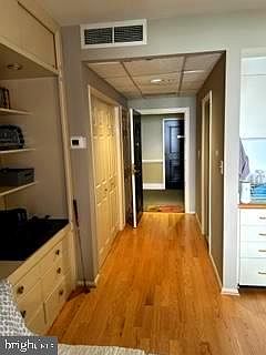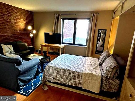 Unit #201 is a rarely available Efficiency Unit located in Henderson's Wharf. All the comforts of the building without the big price tag. This studio unit faces the center courtyard and has large windows and exposed brick. A comfortable Murphy Bed can easily be stowed in to the built in book case until night time, meaning a decent sized living area with kitchenette to enjoy. The unit includes a full sized bathroom as well as a large closet and built in book cases. A laundry room is right down the hall. This building is located at the end of Fell St in Historic Fells Point on a cobblestoned road and is on the water with no thru traffic. Convenient to the best shops, pubs and restaurants in Baltimore City with a wonderful neighborhood vibe.