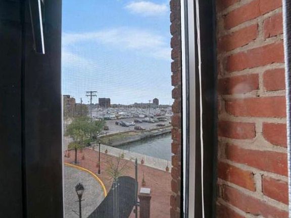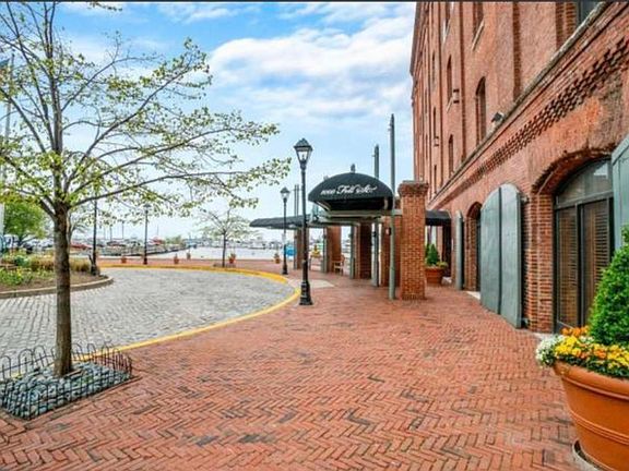 Historic, charming Hendersons Wharf on the end of a cobblestone street. A transformed condominium community with maritime character along the water's edge of Fells Point. Two-level loft with one-bath with stunning cherrywood flooring throughout the main level. The kitchen has updated maple cabinets with plenty of storage, gleaming granite counters, and granite flooring. The living area with exposed brick walls adds true character to its location. The main level has ample space for living and dining area. The residence has a fabulous view of the harbor and marina. Features are 1 covered parking space in an attached garage, 24-hour security, a fitness center, and concierge. Walk to the many shops, inns, and restaurants in this unique and special community that holds a special place in the region's history. Easy commuter route and close to 83 North and 95 Renter is responsible for electric