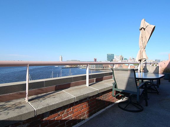One of a kind luxury Penthouse with dramatic water views in Henderson's Wharf located in Fell's Point. Enter through your front door to a "WOW" open floor plan with a gourmet kitchen. The detailed and carefully thought out renovations include an inviting kitchen island overlooking a large dining and living room with plenty of space to entertain. The upgraded kitchen cabinets continue along the wall into the dining area, offering a sideboard with loads of storage. The two level loft style condominium offers two bedrooms and a den with a wood burning fireplace on the second level. Relax on the private terrace that runs the length of the second floor den and bedroom with sweeping harbor views. The main bedroom offers a vaulted ceiling, large windows and sliding glass doors to the terrace. The main bedroom suite also includes lots of closet space with two hall closets and a walk in closet. The ensuite bath has double vanities, granite countertops and a large custom glass walled shower. The second bedroom, with ensuite bath, conveys with a murphy bed, giving the space extra function. The terrace off of this bedroom overlooks the English country style courtyard. This is truly a rare opportunity to own one of the largest penthouse condominiums in the building of Henderson's Wharf located on the water in historic Fell's Point. Walk or jog along the waterfront to the many restaurants, shops and grocery stores. Easy access to 83 North or 95. Schedule an appointment today. Move in fee of $500, inclusive of a $250 elevator fee. $250 is refundable after move in is complete.