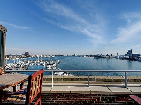 Unique waterfront corner penthouse condominium in historic Fells Point. This three bedroom, three bath 6th floor condominium has over 3,000 square feet of the most luxurious living that Baltimore has to offer. Enjoy spectacular unobstructed water views from the Key Bridge to the Baltimore Inner Harbor skyline. Wake up to beautiful sunrises and relax at day's end watching colorful sunsets from your 45 foot corner terrace. Enjoy watching every day boat traffic in the Inner Harbor, including sailboat races and ships docking at several working piers, as well as some of the best views of the city's many harbor events such as fireworks displays, visiting tall ships, lighted boat parades, dragon boat races, and Blue Angels air shows. The large gourmet kitchen with 9' x 4.5' island was recently renovated with high-end appliances and cabinets, granite counter tops, and wet bar with 2-drawer refrigerator and is ideal for food preparation and entertaining. Other major improvements include two 5-ton Water Furnace Geothermal Heat Pumps, energy efficient Pella windows and doors, and custom closets. If it's too cold for the terrace, warm yourself by one of two wood-burning fireplaces, one in the living room and one in the sitting room of the master bedroom suite. Your condominium at Henderson's Wharf includes TWO indoor deeded parking spaces and amenities including fitness center, 24-Hour front desk, and secure entry for residents. Experience the vibrancy & convenience of city life while also enjoying the quiet and privacy of living in a fully secure building at the end of a quiet dead-end street. Walk to the heart of Fells Point in minutes, as well as Harbor East and Canton, to enjoy all the restaurants, entertainment, and shopping that these thriving city neighborhoods offer. If you are looking for the best of the Baltimore waterfront lifestyle, this penthouse delivers.