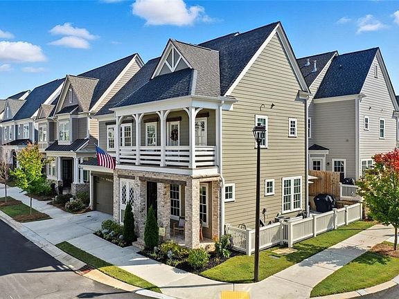 Step into elevated living in South on Main, widely recognized as one of Cherokee County’s most desirable and best-selling communities (Livabl). Situated just steps from Downtown Woodstock—or a short golf-cart ride away—this home offers both unbeatable convenience and stylish living. This 4 bedroom, 3.5 bath residence spans three levels and is finished with decorator-level aesthetics and thoughtful upgrades throughout. The main level features a stunning kitchen with a large island, quartz countertops, and upgraded GE Café appliances in the highly sought-after flat white finish. The open design flows into the family room, dining area, and a keeping room for additional living space, making the main floor ideal for gatherings. Upstairs, the master suite feels like a spa retreat with dual his-and-hers closets, a freestanding soaking tub, and an oversized shower. Also on this level are two additional bedrooms: one accented with dramatic barn doors, and another with private access to a covered porch. The third level adds even more flexibility with a spacious media or bonus room, plus another bedroom and full bath—perfect for guests, teens, or a home office. Outdoor living is cozy and welcoming, with a corner lot that provides a more open feel and enhanced privacy. Life in South on Main means enjoying resort-style amenities, including a large clubhouse with gathering and fitness spaces, a resort-style pool with cabana and kids splash pad, barn-inspired community pavilion, gardens, playgrounds, parks, sidewalks, and frequent neighborhood events. It’s one of the most social and walkable communities in Woodstock, where neighbors become friends. If you’re searching for a stylish, upgraded home paired with one of the most dynamic communities in Cherokee County, this property delivers the complete package.
