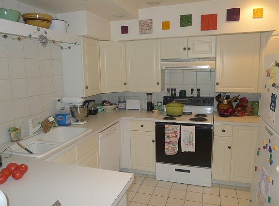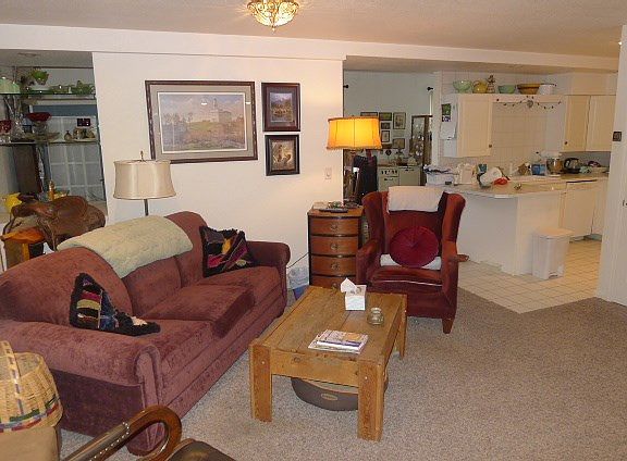 Wonderful and logical floorplan. You enter into a pleasant living room with a feature wall of built in curio cabinets. An efficient kitchen sits to the right side of the living room and down a hall to the left are 2 restful bedrooms, each with an en suite. Along the windows facing east, there is a spacious combination room, for dining, office, whatever you desire. A non functioning fireplace still provides a charm and cozy vibe to the space. A large deck with private access is attached off the dining area. Peaceful sounds from the exterior water feature can lull you into a comfy a nap. What a retreat!