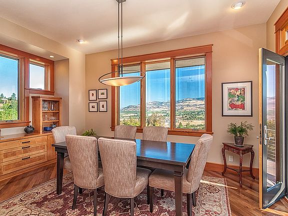Quintessentially Ashland! First time on the market, custom home with fabulous Pacific Northwest Styling and Arts & Crafts touches. Ideal location on a private knoll with 8.41 acres, expansive views of Grizzly Peak and Rogue Valleyjust minutes to downtown. Award-winning construction by Eric Laursen, coffered ceilings, Brazilian cherry floors, fir doors and trim, expansive walls of wood clad windows, art glass lighting, gas fireplace, built-in bookshelves, separate den, top notch details throughout. Gourmet kitchen with eating island, 5-burner Wolf cooktop, double oven, cherry cabinetry, custom countersall adjacent to the dining area and expansive outdoor deck for soaking in the outdoors. Luxurious master bedroom suite on the main floor with balcony, custom tile, infrared sauna, double head shower, and sunken tub framed by a window of views. Two separate bedrooms downstairs with private bath, adjacent to the resort quality lagoon pool with waterfall feature.