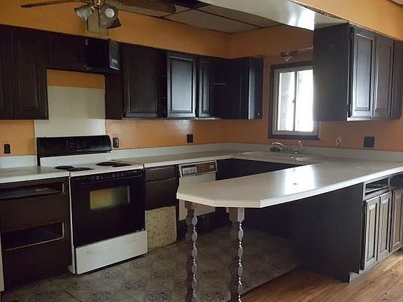 Solid brick 4 bedroom home located on a corner lot. Home is in need of some repairs, but has great potential. It needs a ROOF. Has an active leak that needs repaired immediately. Updated laminate flooring on the main floor and in the master bedroom. Boiler system was updated, and works well. Home also has an enclosed sun room on rear and also has an off street parking pad in rear.