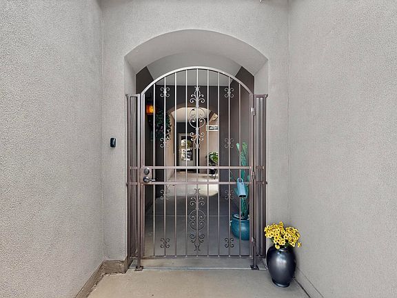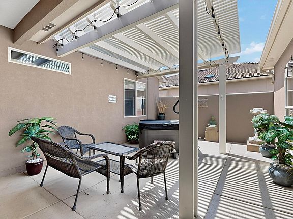 Discover this corner-lot beauty in Alegria, Del Webb's premier 55+ community in NM. Enjoy Sandia Mountain views from the living room and patio, plus a courtyard with custom gate, pergola, and hot tub. The main home offers 2 bedrooms, 2 baths, and upgrades like owned solar, 42'' upper kitchen cabinets, fireplace, and water softener. The highlight is the private casita with full bath--perfect for guests, family, or a hobby retreat. Alegria residents enjoy gated entry, clubhouse, fitness center, pools, walking paths, and an active social calendar. Style, efficiency, and flexibility come together in this exceptional home.
