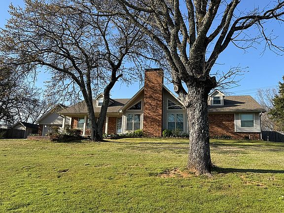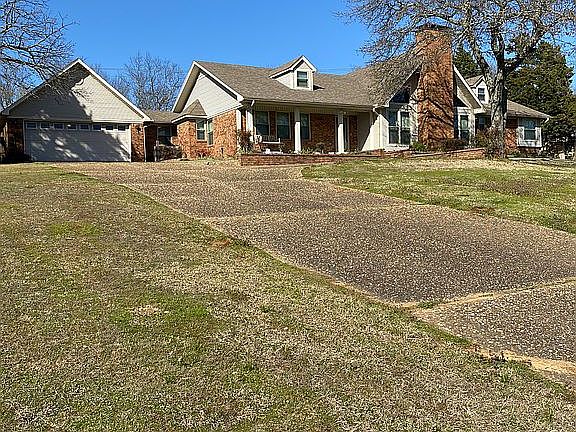 You have the best of both worlds, a city view from the front and a country (wooded) view from the back. It has 3 bedrooms, and 2 bathrooms, plus a bonus room that makes the 4th bedroom. It has a large, vaulted great room with a dining area. The kitchen is an eat in kitchen with a table area and also a bar. The primary bedroom has his and hers closets (this home has an abundance of storage closets.) Other rooms in the home include an Office/Library, a sunroom, a utility room, and a large safe room. Outside, there are 2 patios, one off each side of the sunroom. There are 3 storage/workshop buildings plus a screened in garden. We have blueberries, blackberries, strawberries, and fig trees. We also have a picnic area that includes a long built in table, plus a firepit, and a walking area. This home has had numerous updates.