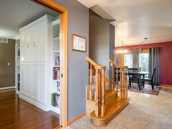 Beautiful 3000+ sq. ft, 4 bedroom, 2 1/2 bath home for sale on just over 1/2 an acre corner lot, in a great neighborhood. Living room boasts vaulted ceiling and gas fireplace. Lots of natural light through round top windows in living room and master suite. Open concept living room dining room and kitchen. Front room with new, custom fitted, Murphy Bed with book shelves can be used for office/dining/guest room. Master suite includes full bath with separate shower, garden tub, and walk in closet. Basement with two finished rooms and an unfinished storage area. Spacious 3 car garage includes small storage room, and attic. Backyard privacy with trees on three sides. New composite deck steps down onto stamped concrete patio, surrounded by new, professional landscaping. Other recent home updates include new roof and gutter guards, new water heater, new Stainless Steel Kitchen Aid double oven, and dishwasher, shed. All wooden slat blinds and appliances convey including washer and dryer. Do not miss this opportunity!