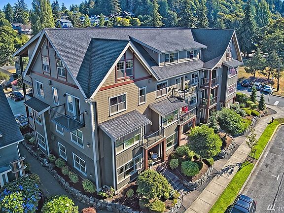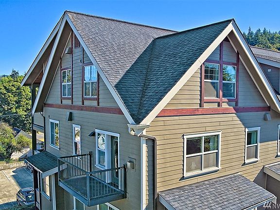 UPSCALE LUXURY PENTHOUSE. Corner unit with panoramic Bay, City & Mountain views. Culinary kitchen features granite counters, custom cabinetry, bar for additional seating plus dining. Gorgeous interior finish work: painted trim and Cherry doors. 2 master suites, one on each floor. Living room with gas fireplace. Family room/den. Deck with northwesterly views. Elevator goes to each floor. Garage and extra parking space. Laurel Park. Walk to Fairhaven, Downtown, WWU, trails and waterfront.