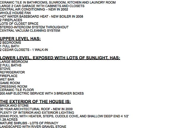 - Exterior features: Stone