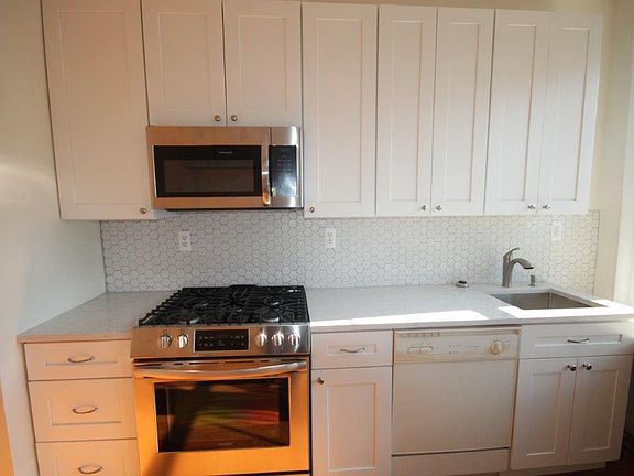 Uptown Hoboken newly renovated condo in classic pre-war elevator building directly across from Elysian Park. Bright front-facing apartment with NYC views. Spacious boxy rooms with hardwood floors throughout. Brand new kitchen cabinets, counter tops, and appliances. Master bedroom and 2nd bedroom with French doors that can be used as a den/office. Rent includes heat and hot water. Common garden space and washer/dryer room on lower level. One year lease. 1.5 month security deposit. Credit checks required. Tenants pay 1 month rental fee. Rent includes heat/hot water. No pets. No smoking. Offered by licensed NJ real estate broker.