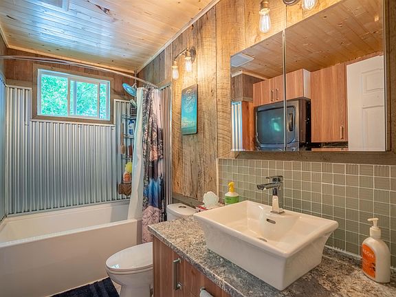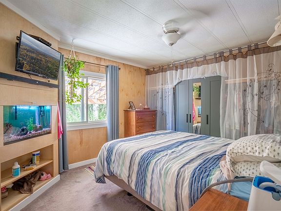 Desirable location in Desirable Inver Mobile Estates. Pride of ownership shows in this nicely renovated home. Updates include new kitchen, bathroom, siding, living room, windows, roof, flooring all done over the past few years. Has covered Sundeck at back of addition in front. Every private back yard against greenbelt area of Park. You will be impressed. Shows well.