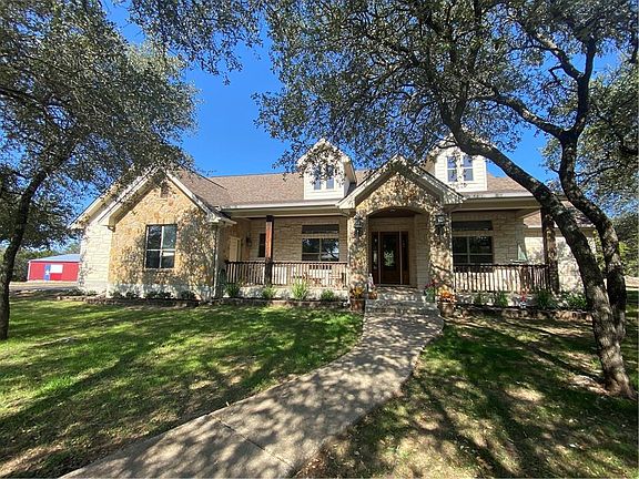 THIS IS THE ONE! This Property Impresses From the Start - (professional pictures coming soon) Stunning, Custom Jeff Watson Home on 5 Private Acres with Pool, Hot Tub, Barn, RV Hook-up! Texas Hill Country Style Welcomes You With Sandstone Rock Wall with Beamed Ceiling Upon Entry, Open Living Flows Well From Room to Room. Large Picture Windows Overlooking Covered Patio/Pool/Private Wooded Back Exterior with Lights Strung in Trees for Evening Pleasure OR Is It Your Own Resort Style Living?! Incredible Features Throughout the Home Including Floor To Ceiling Limestone Fireplace, Beamed Vaulted Ceiling, Constant Flow Hot Water Throughout House, Granite Countertops, SS Appliances and MORE! Master Bedroom on Main Level as well as Private Office, Guest Bedroom with 2.5 Baths, Making This Floor Plan Super Convenient. Upstairs Living Provides Large Game Room with Balcony to Soak Up the Texas Skyview and 2 other Private Bedrooms Containing Their Own Vanity Area and Shared Bath. Bring Your Horses to their 3 Stall Barn, Park Your RV On Site, 3-Car Garage for ALL Your Vehicles! This Is A One Of A Kind!!! OWNER/AGENT - Pets On Premises, Need Reasonable Time to Remove Pets for Showings.