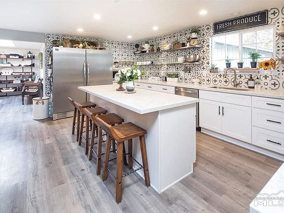 Truly remarkable single family home in highly desirable South Reno location! If walls could talk they would tell you about the transformation this stunning home has undergone. Beautiful lifeproof laminate flooring and a completely remodeled kitchen welcome you into the home and invite you to stay. A custom tile backsplash, a grand island with spacious breakfast bar, stainless steel appliances, plenty soft close cabinets and counter space and brick pizza oven make this the kitchen of your dreams!
