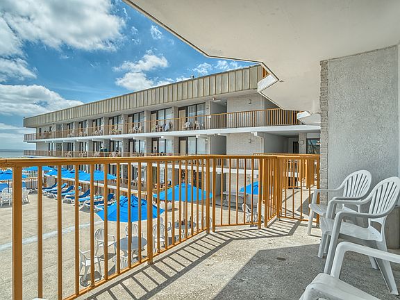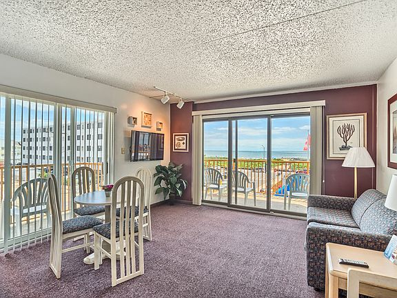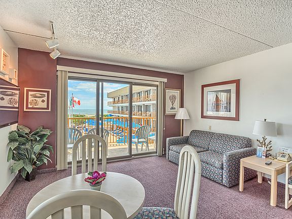 Oceanfront Condominium at the Roman Holiday! This end unit is on the 3rd floor and has unobstructed views of the ocean right out of your living room! There are three balconies all together, one of which overlooks the heated pool and all overlook the Atlantic Ocean! Since this is an end unit the light is fabulous! The spacious bedroom has two double size beds with one of the balconies. The air conditioning system was new July 2021, the refrigerator purchased in 2020 and the cooktop in 2019. The kitchen countertop was installed in 2017. The condo fee includes all the utilities, including the cable and WIFI, the outside insurances, water/sewer, outside and pool maintenance. Owners are allowed to bring their pet. Building is seasonal and opens around the beginning of April and closes around the end of October. Some of the amenities include laundry facilities, bbq area, and nice sundecks with lounge furniture, poolside cabanas, and an elevator. There is on site rental management. Showings will have to be between rentals and the key must be picked up at the rental office.