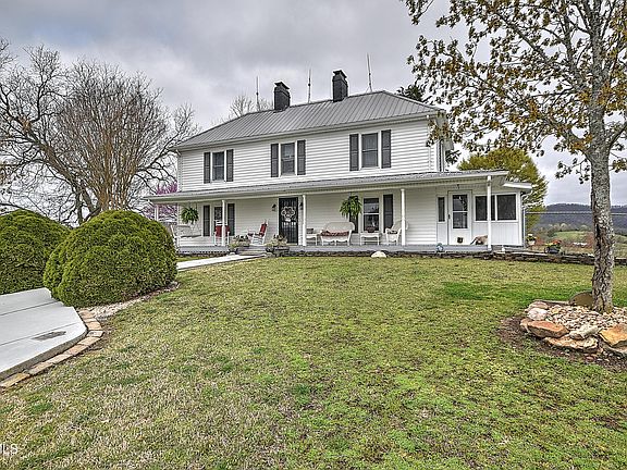 Charming Historic Farmhouse with Stunning Mountain Views. Step back in time with this beautifully preserved farmhouse dating back to 1875, once the heart of the Brown family's dairy farm spanning over 200 acres. Now nestled on 10 acres of lush land, this home blends historic charm with modern comfort. Inside, original hardwood floors flow throughout most of the home, offering a glimpse into the past while maintaining warmth and character. The spacious downstairs includes a large kitchen, dining room, family room, full bathroom and an office—perfect for both everyday living and entertaining. Upstairs, you'll find three cozy bedrooms and a recently remodeled bathroom (2023). Two beautiful fireplaces, never used, add to the timeless appeal of the home. Enjoy the seasons from the oversized covered front porch or the expansive 16'x32' back porch, where you can relax and take in the breathtaking mountain views. A screened porch on the side of the house adds an extra layer of charm for warm evenings. Outdoors, the property features an old dairy barn that has been repurposed for storage, a four-bay garage (1,800 sq. ft.) with water, electricity, and a compressor room with a compressor that conveys with the property. Car enthusiasts will appreciate the included car lift. There's also an additional barn with an attached chicken coop, which is fully equipped with electricity. The property includes an orchard with a variety of fruit trees—apple, pear, fig, muscadine grapes, table grapes, mulberry, and pecan—offering a charming farm-to-table experience. Recent updates include attic insulation (2022), a new water heater (2022), new AC unit (2014), and a metal roof with new siding (2007). The downstairs windows were replaced in 2009, and support beams in the barn were reinforced, ensuring long-lasting structural integrity. This rare opportunity to own a piece of history, with modern comforts and abundant outdoor space, won't last long. Schedule your private tour today