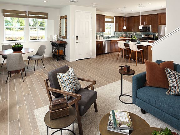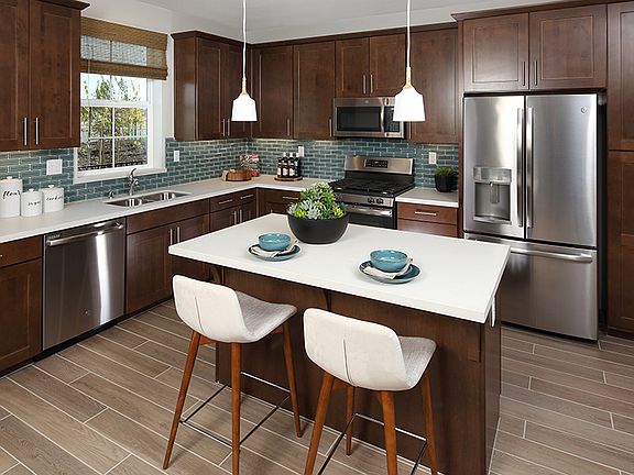 The Plan 4 offers room to grow! Living is easy downstairs with an open concept gathering space, dining and kitchen along with a covered outdoor living space. Upstairs are three bedrooms, a loft, 2 bathrooms and laundry. The owner's suite is spacious with two walk-in closets and attached bathroom providing a double vanity and walk-in shower. An attached two-car garage offers extra storage space.