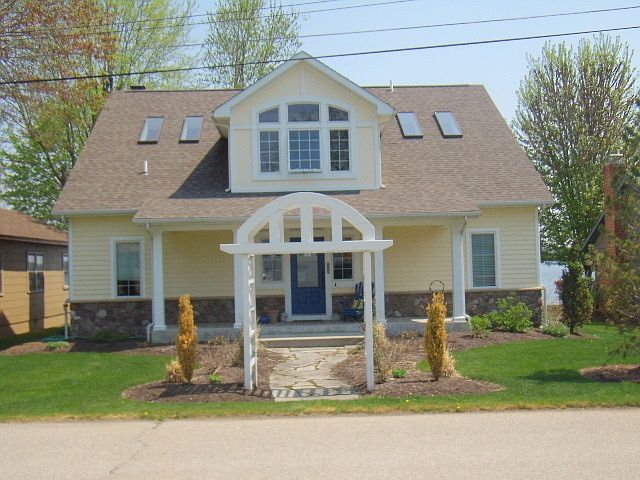 Quaint and comfortable Cape Cod home on 57' of lake frontage on exquisite Lake George. Amazing views of the lake from the lovely screened in porch. The perfect spot for your morning coffee or evening cocktails! No expense was spared in the details; Anderson windows throughout & cathedral windows are automated for cross ventilation, new floors through the main, huge built-in bookcases, irrigation system, central vac, screened downspouts, new roof & siding on the detached garage, & the home is fabulously decorated! Excellent sandy beach & level lot. Call today for your private showing!
