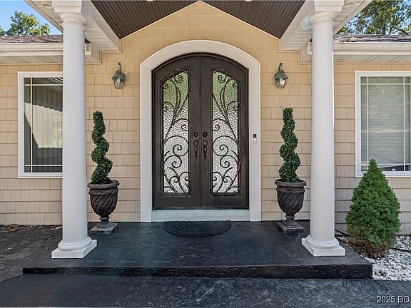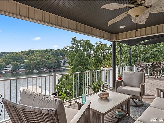Experience luxury lakeside living at its finest on the 4 MM in beautiful Lake Ozark, Missouri. This stunning 4 bed 3 1/2 bath custom-built home welcomes you with grand iron double doors, soaring vaulted ceilings, and expansive windows framing breathtaking lake views. The open-concept kitchen and dining area boasts custom cabinetry, granite countertops, and a spacious layout ideal for entertaining. Each level offers its own inviting living area, with the lower level showcasing a full wet bar and a lakefront en suite, creating the perfect retreat for guests. Step outside to your private dock , complete with a massive 16x44 cruiser slip, swim platform, and two PWC slips. The oversized two-car garage provides extra room for a golf cart, with a concrete path leading directly to the dock for easy lake access. This property is vacation rental–friendly, offering exceptional potential as both a personal getaway and an investment opportunity. Whether you’re watching the sunset from your deck, entertaining friends, or enjoying a quiet morning by the water, this luxury lakefront home captures the true essence of Lake of the Ozarks living. Golf cart available for extra $.