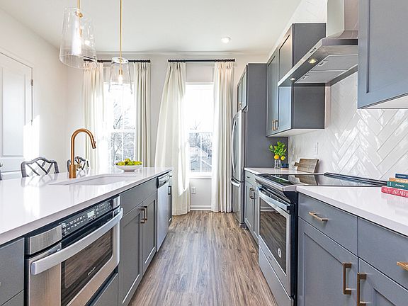 The Middleton floor plan seamlessly combines style and functionality. The open-concept middle floor, with an oversized kitchen island and covered porch, is perfect for entertaining. The spacious kitchen connects seamlessly to the family room and features a built-in pantry for ample storage. The top floor offers a private owner's suite with a luxurious bath, with a secondary bedroom and bath for guests or roommates. A two-car garage on the first floor adds convenience to this well-designed townhome.