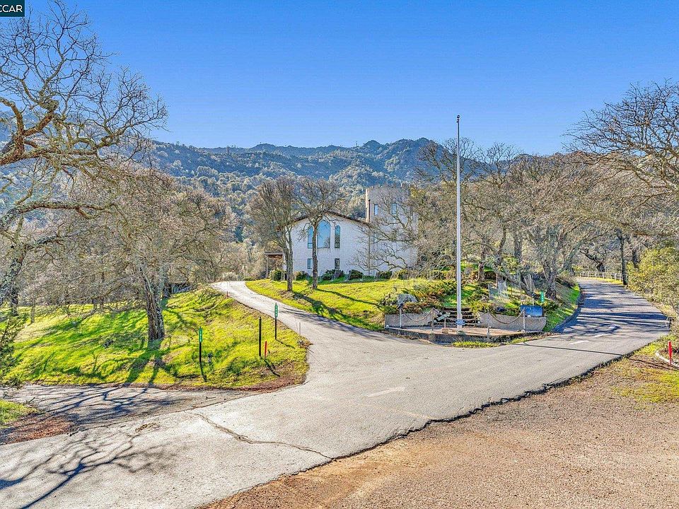 Grand Estate of Nearly 80 Acres Backing to Mt. Diablo State Park. Enter Gate & Drive Up Gentle Winding Rd. Passing Creeks, Nature & Serenity. Arrive at Sprawling Main House Surrounded by Trees, Ample Parking & Incredible Views! Beautiful Front Door Leads You to Massive Dining Room with Kings Table & Seating for 18, and 3 Chandeliers. Adjacent Living Room W/ Soaring Ceiling, Reclaimed Wide Plank Wood Floors, Fireplace, Tall Windows & Balcony. Bedroom on Ground Floor of Turret & Library on 2nd. Massive Kitchen & Family Room w/Fireplace. Primary Suite w/En Suite, and Private Balcony. 2 Additional Bedrooms each W/Private Full Baths. Convenient Laundry Room Off Hallway. Downstairs Find 4+ Garages, Bonus Room/Full Bath & Walk In Safe. Detached 1 Bed/Bath Cottage w/ Kitchen & Laundry. Green House w/bath, Barn, & an Outdoor Space to Impress! Bocce, BBQs, Aviary, Picnic Tables, Fish Pond, 2 Outdoor Bathrooms, and Water Storage Tanks. Family Compound? Weddings? Unique Property, Too Many Features to List! Built & Loved by One Family. Use Caution on One Lane Road to House. GPS IS WRONG, You will see my signs near 2400 Morgan Territory Rd. DO NOT Go without an appointment. Link to drone pics: https://drive.google.com/drive/folders/1Ku_yW-nXcqiZ3Xm1kD7QeAz8Gb-VTmv4?usp=sharing