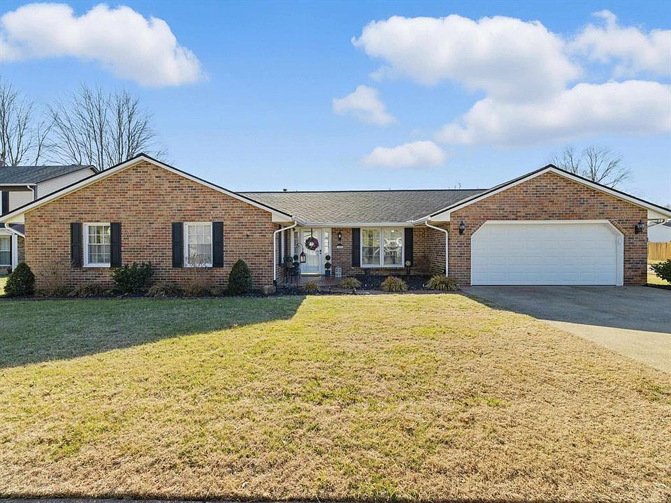 Gorgeous brick ranch convenient to bypass and NO HOA. All immaculate 2275 Sq ft on ONE LEVEL. There are 3 bedrooms, 2 1/2 baths and 2 separate living areas, beautiful built-ins and fireplace. Corner lot with big back yard, large covered back porch, storage buildings with almost new privacy fence. Won't last long. A MUST SEE.