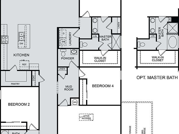 This newly designed single story home features a gallery entry, two bedrooms and one full bath at front hall. Kitchen and dining are open to Great Room. Island includes a Stainless Steel single-basin sink and dishwasher, allowing the cook in the family to never miss any of the action. A large walk-in pantry provides plentiful shelving and additional storage options. This open-concept plan is ideal for entertaining guests and enjoying quality family time. The spacious owner's bath includes generous storage space, walk-in shower, double vanity, enclosed water closet and large walk-in closet. Enjoy additional convenience with laundry located just outside of the owner's suite. A private bedroom and powder bath are located at garage entry. Structural options added to 1000 Moose Road include: 10x10 covered patio. MLS# 4124364