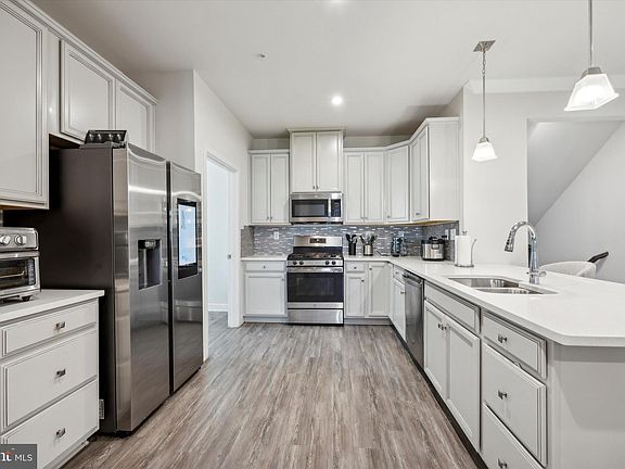 Welcome to 1000 Moscariello Ln in the highly desirable Spring-Ford School District. This end unit townhome, built in 2021, has the most square footage offered in this community and features so many upgrades! Upon entering through the foyer you will notice the quality of construction, from the flooring to custom crown molding, to the open concept layout of the living room and beautiful kitchen. The kitchen offers a large peninsula, custom 42" cabinets, quartz countertops, and tile backsplash. The stainless steel appliances are perfect for any cook in the house, and the refrigerator can be connected to via bluetooth to your phone to make grocery ordering a breeze! The living room offers plenty of natural sunlight, highlighted by 10 ft ceilings! This home boasts 3 generous sized bedrooms, including a FIRST FLOOR PRIMARY suite with tray ceilings. Also on the main floor is the dining room, half bath, large laundry room and access to the 2 car garage. Step outside to the Trex deck, creating an ideal setting for outdoor relaxation and entertainment. Upstairs is an expansive loft area that opens up, overlooking the first floor living room, a full bath, 2 more large bedrooms, laundry room, and large utility room. The spacious FINISHED BASEMENT offers a versatile space with dry bar area. The second utility room offers plenty of room for storage. This location offers a wealth of outdoor activities such as golfing, hiking, and parks. Enjoy the close proximity to Turtle Creek Golf Course, Landis Creek Golf Club, Perkiomen Trail, Philadelphia Premium Outlets, restaurants, shopping and more.