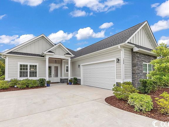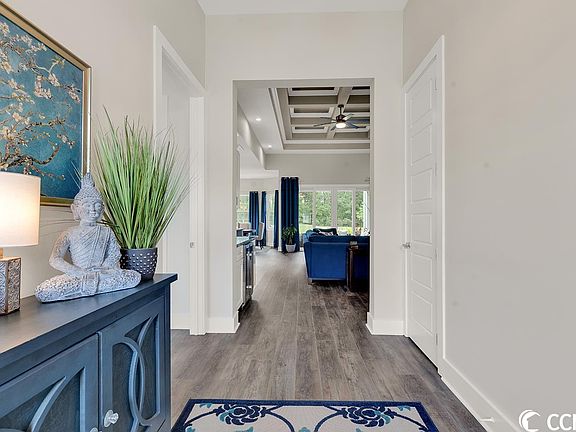 Step into this exquisite 4-bedroom, 3-bathroom custom home located on a serene Golf Course lot, nestled within a quiet Cul-De-Sac. This home offers the perfect blend of luxury, functionality, and modern convenience. Boasting 4 bedrooms and 3 bathrooms, this home is a dream come true for those seeking spacious living, abundant natural light, and a premium location overlooking the 7th and 8th holes of the prestigious Wild Wing Golf Course. Upon entering, you'll be captivated by the grandeur of the 13ft trayed ceiling in the foyer, adorned with elegant crown molding, setting the tone for the level of craftsmanship and attention to detail throughout the entire home. The open floor plan seamlessly connects the living, dining, and kitchen areas, creating an ideal space for gatherings and entertaining. As you explore this gem, you’ll notice the 8ft doors throughout and the high ceilings throughout this home. The Living room features a custom coffered ceiling design with 14ft ceilings and 10ft ceilings throughout. You'll be delighted by the beautiful stained wood ceiling on both the front porch and covered back patio, offering a charming outdoor escape to relax and enjoy the views. Moving back indoors, upgraded 6mm Padded LVP flooring in every room. This flooring is commercial-grade and provides a very durable yet luxurious look and feel. Cooking enthusiasts will find their paradise in the chef's dream kitchen, featuring GE Profile stainless steel appliances, including a gas range, dual oven, and double door fridge with a convenient cold beverage drawer. The built-in microwave and high-efficiency dishwasher further enhance the cooking experience. For wine/ beverage connoisseurs, a dedicated wine/beverage fridge in the bar area adds an elegant touch. The bedrooms in this home are designed with your comfort in mind, with the main bedroom boasting a remarkable 14ft tray and coffered ceiling, complemented by crown molding, creating a sense of sophistication. All guest rooms are generously sized, offering ample space for family members or guests. Luxury continues into the bathrooms, with custom tile showers in all three, while the main bathroom takes it a step further and presents like a spa retreat. A vast walk-in shower and soaking tub combo, finished with floor-to-ceiling tile and river rock, promise a truly indulgent experience. Among the numerous features of this home, practicality is also a priority. The tankless water heater ensures a constant supply of hot water and efficiency, while the ADT Smart home technology grants you remote control over the front door lock, garage door, thermostat, and home security system. Schedule today!!