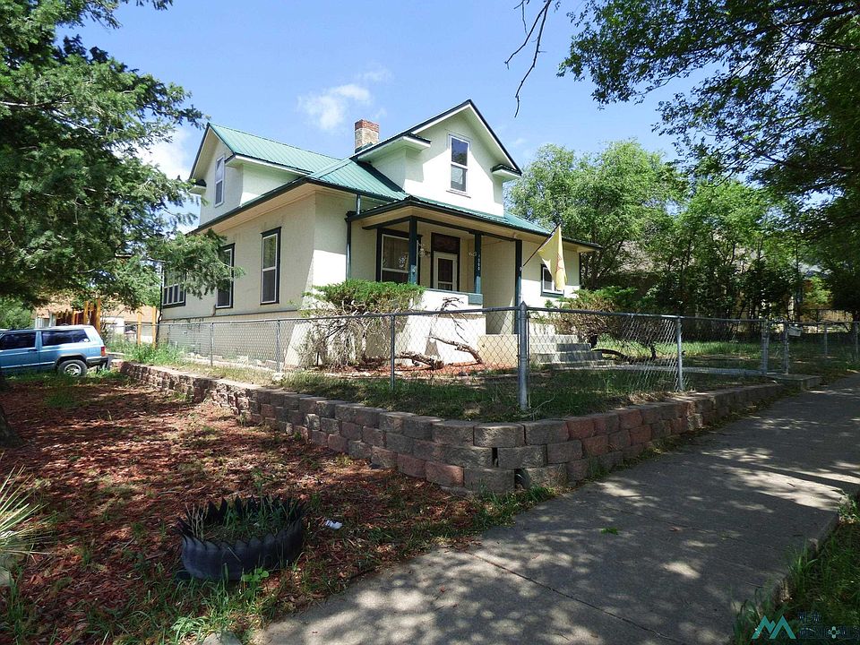 Nicely maintained craftsman style home for your consideration. Situated on a corner lot, with great views of the surrounding area. Mature trees, and recent landscaping throughout property. Fully fenced for privacy, and security! Step inside the front door, and you will enjoy tall ceilings, big windows, and original wood flooring. The primairy suite is located on the first floor, and includes a private en-suite bath. The formal dinning room has a fireplace with wood burning insert, as well as the beautifully ornate stairway to the 2nd floor. The kitchen includes whirlpool appliances, and a breakfast bar! Upstairs are 3 bedrooms, which would be great for a family, or a work-from-home office scenario. The 2nd floor has newer vinyl plank floorinig. Large backyard with brick patio. Nice privacy fencing around the perimeter. Alley gate for off street parking. Possible RV parking. Nice garage, with electric, and a newly shingled roof! Roses, lilac, wildflowers, and more!