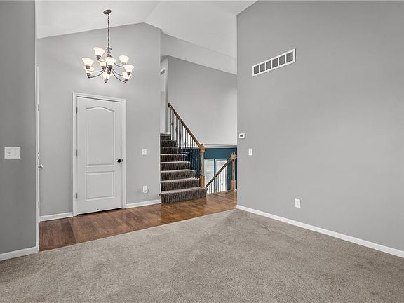 Kearney home just minutes from highway access, and minutes to elementary school. Spacious home with room to grow. Popular Atrium split or side side split in awesome neighborhood. Walk in to sitting room that is conveniently located on the same level as the kitchen. Go down to your large family room which boasts a beautiful fireplace, half bath, and walks out to backyard for easy hosting of family events. Go down another level for unfinished sub-basement to use for storage or finish off for extra living space. The possibilities are endless. Upstairs you have all three bedrooms and a remodeled bathroom that is handicapped accessible with walk-in shower. Laundry is on bedroom level for all of the convenience. All bedrooms are good size. Home has newer carpet (less than 3 years) and includes all appliances. Come make this your home sweet home!
