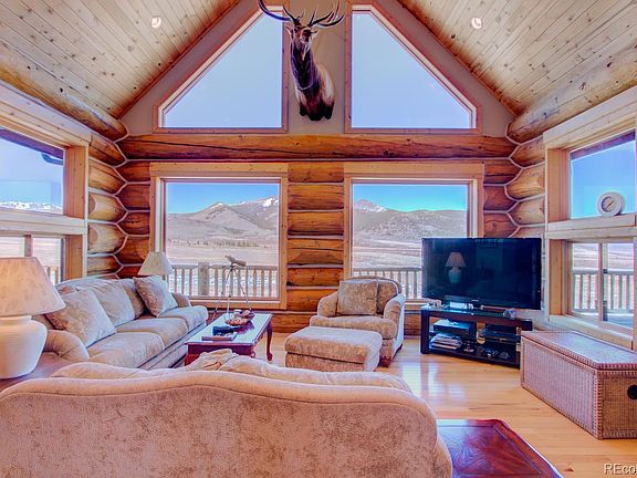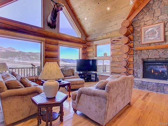 Custom built "notch and saddle" log construction. Beautiful 360 degree views of mountains and meadows. Approx. 75 minutes to the Denver Metro area, 20 minutes to Breckenridge. Open floor plan. Main floor and lower level have radiant heating. Main floor master has hers and his walk-in closets, gas fireplace. Lower level has movie / TV theater, pool room, and other flex space. Generator included. GUEST / CARETAKER HOUSE HAS MULTI CAR HAS MULTI CAR GARAGE (30' X 40'). Six cars may be possible depending on size. UPPER Level, 1,200 SF, 2-BR, full bathroom, full kitchen, furnished and equipped, gas fireplace. Great views from all windows.