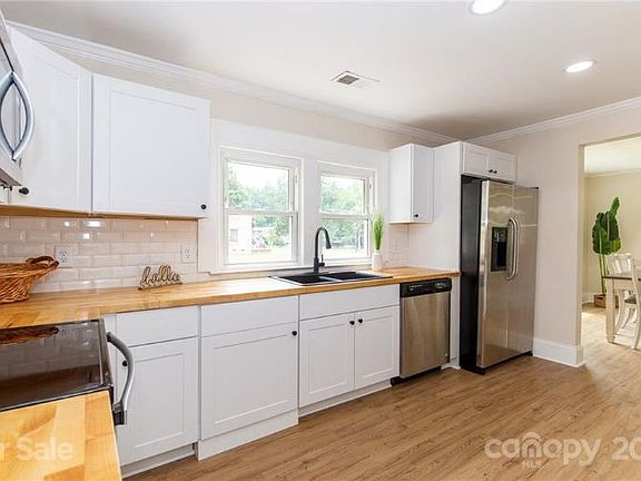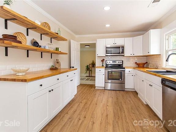 This home is a must see in booming Gaston County. This home has been fully renovated and updated with high-end black finishes! The home features stainless steel appliances, butcher-block counter tops, and luxury vinyl plank through-out the home! These finishes are a steal at this price point. The combination of neutral paint and natural light makes this home bright and vibrant. Come and enjoy the covered porch that offers plenty of "R&R"-"Rocking Chair Relaxation". Do not miss out on this one!!