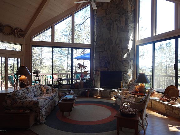 Peaceful, Serene & Breathtaking Views for this Gently Used Custom Home in Desirable Highland Pines. Situated on a Rare 1.34 Acre Ponderosa Pine Covered View Lot. Level Entry, Single Level Living, Three Bedroom Are All Suites w/Private Baths. Great Room With Soaring 18' Ceilings, A Wall of Windows to Bring in the View, 18'Artistic Stone Wood Burning Fireplace, Natural Hardwood Floors in Excellent Condition & French Doors to the Deck. Family Room, Hobby Room and Loft with a Sitting Area. Extensive Unfinished Dry Crawl Space Could Be Finished and Included in Square Footage or Converted to a Nice Workshop or Used for Storage. Roof Replaced in July 2013 & Comes with a Warranty. Designer Furnishings Throughout - Home Could Be Sold Furnished. Come, Enjoy Cool Country!