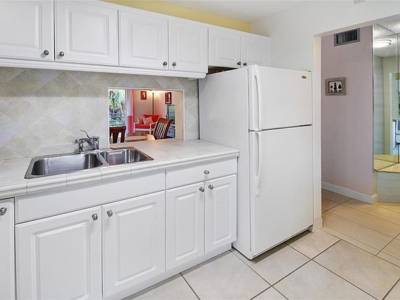 Your beach condo is turnkey. Pack your bags and put the key into the door. Cheerful, spacious, Light and bright. Combo living/dining with porcelain tiles. Screened in terrace with garden/golf view. East/west tropical, balmy breezes throughout your new home. Plenty of walk-in closet space. Unique pink bathroom or re-glaze that color. Large main bedroom with private door to your terrace and extra thick bamboo flooring. Undercover parking space. Finishing 50-year certification shortly and paid by seller. New roofs on all buildings in the complex. Concrete restoration, water proofing and painting has already been completed. No leasing for first 2 years. One person must be age 55 or over. No pets. Undercover parking space. Near shops, transportation, entertainment and the beach,