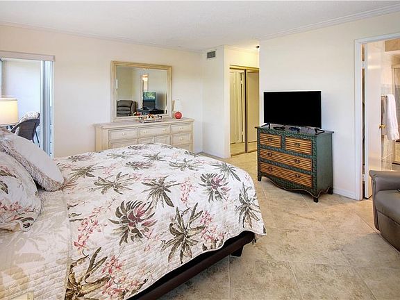 Spacious, turnkey, corner furnished 2 bed 2 bath condo on the Auberge Golf Resort! En suite is light & bright with access to your terrace. Remodeled baths & kitchen. Plenty of closet space & gorgeous high-end furniture tastefully decorated. Crown molding. Accent wall painted eggplant complemented by creamy ivory sofa bed and side swivel chair. Foyer entrance. impact windows. Screened in terrace with accordion shutters. Enjoy morning coffee on your terrace watching the sunrise. You will definitely enjoy the tropical breezes that flow east to west. Almost completed the 50-year certification. All new roofs. New commercial laundry contract. covered parking. Heated pool, sauna, pool table, clubhouse, BBQ. No pets/rentals for first 2 years. One person must be over age 55.