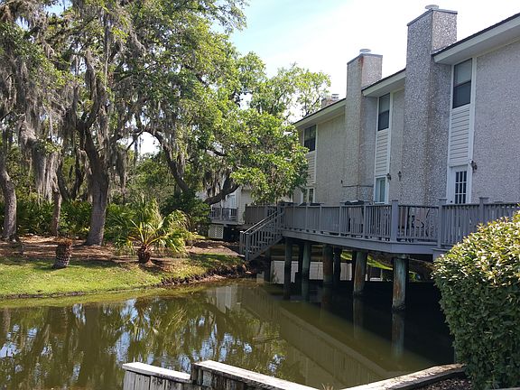 You will absolutely love the location of this fantastic Gascoigne condo!! The back deck overlooks a green space with many beautiful trees and the lagoon, so the view is great!!! With a freshly painted interior, this condo has a new HVAC and a new roof. It comes completely furnished....including all kitchen appliances and a washer/dryer. The open floor plan has a Great Room with fireplace, Dining Area, and Kitchen. There is a half bath downstairs. Upstairs are two spacious bedrooms and a bath. The complex has a community pool. You are certainly close to the village, shopping, and restaurants. You will love being so close to the entrance to the causeway!!!