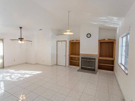 Great 4 bedroom 2 bath corner lot for extra parking, this home features high ceilings, tiled flooring and granite slab kitchen countertops. Living room features high ceilings and a wood burning fireplace with side built ins, this home also features dual paned glass windows and slider, skylight in hall bath for extra lighting, central heating and stucco exterior as well. This home is move in ready.