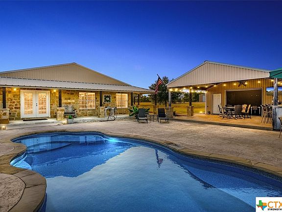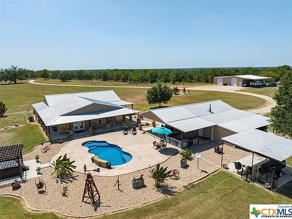 1300+/- ft of road frontage w/ 4 parcels make up this 40 acre ranch. Perfectly situated, the 4/3 custom built farmhouse has a wrap around porch. Enormous kitchen offers an abundance of white cabinets, a timeless backsplash, and expansive counter space! Just off the living area with a fireplace and vaulted ceilings is the primary suite with access to the backyard and an impressive en suite bathroom with dual vanities, dedicated shower, and walk-in closet--check out the door straight to the laundry room! 3 secondary bedrooms, jack-n-jill w/style bathroom. The outdoor kitchen overlooks the in ground swimming pool and above ground hot tub. 50x55' shop w/ 3 roll up doors and 14' walls, 20x50' covered parking w/ water. Just beyond the home are the exceptional 90'x55' horse facilities w/ 5 stalls (4 have turn outs), wash area, and oversized tack room with easy proximity to the lighted arena. Fenced, cross fenced, ag-exempt, unrestricted is a must see just 1 hour southeast of Austin.